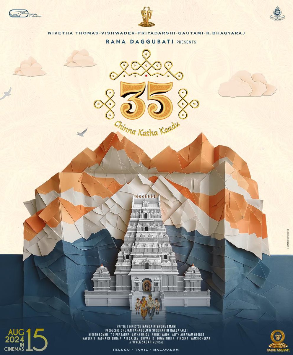 The movie, intriguingly titled “35 – Chinna Katha Kaadu,” was unveiled through a pleasantly designed poster. The poster is designed as a caricature where a family is seen sitting on the stairs of a temple. The makers are gearing up for the theatrical release, announcing its worldwide release on the eve of Independence Day, August 15th.